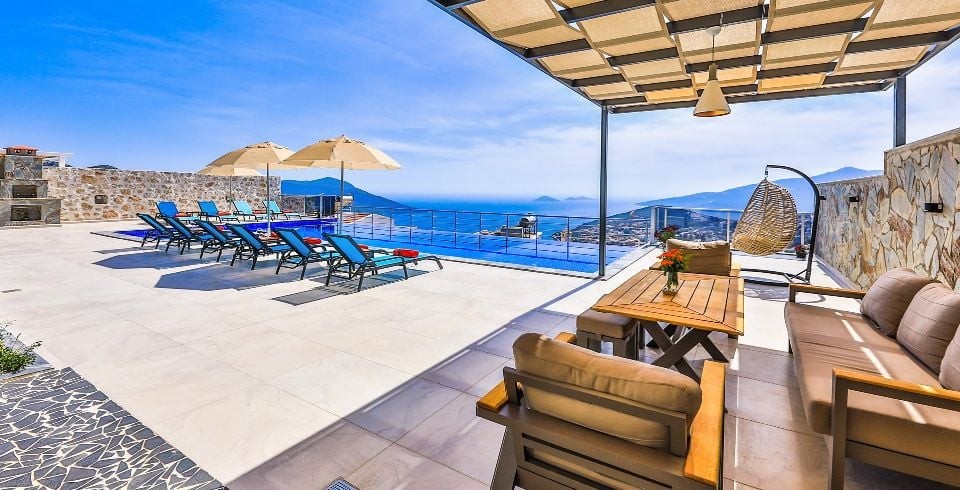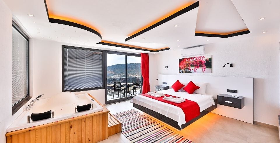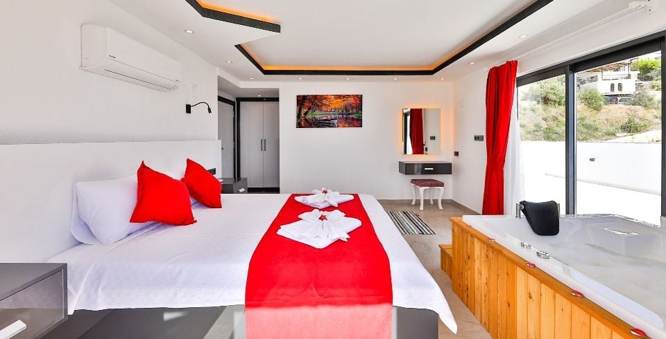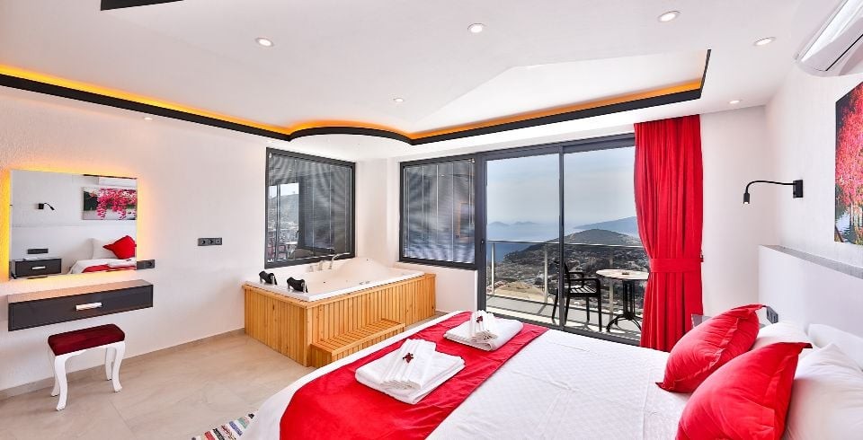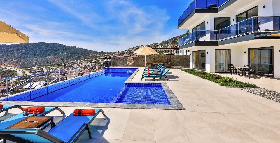 Villa July, Kalkan Kızıltaş bölgesinde bulunan villamız 10 kişi kapasitesine sahiptir. Geniş aileler ve arkadaş grupları için ideal villalarımız arasında yer almaktadır. Muhteşem deniz manzarasına ve Kalkan'ın şehir manzarasına sahiptir. Geniş havuz terasına sahip villamızda eşsiz gün batımını izleyebilirsiniz. Denize ve şehir merkezine yürüme mesafesinde yer almaktadır. Villamız da çocuklar için çocuk havuzu bulunmaktadır. Yatak odası kısmında ise jakuzi bulunmaktadır. Villamızın yatak odalarının hepsi deniz manzaralıdır.