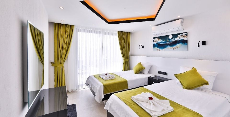 5. Yatak Odası : 2 adet tek kişilik yatak odası, elbise dolabı, klima, makyaj masası, komodin, banyo & WC bulunmaktadır.