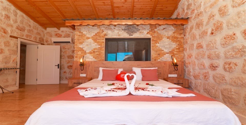 1. Yatak Odası : Çift kişilik yatak, klima, komodin, elbise dolabı, makyaj masası, banyo ve lavabo, jakuzi bulunmaktadır.