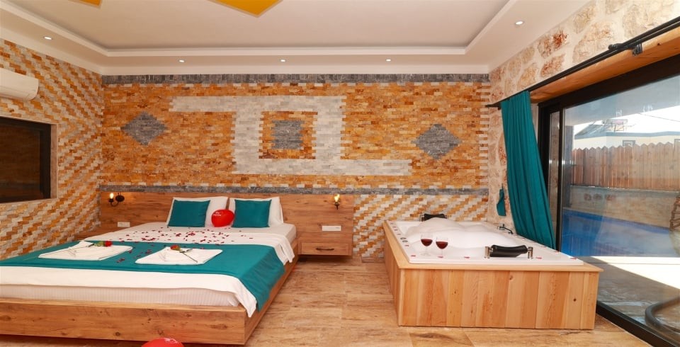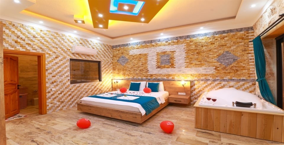 Yatak Odası: Çift kişilik yatak, klima, jakuzi, komodin, elbise dolabı, makyaj masası banyo ve tuvalet bulunmaktadır.