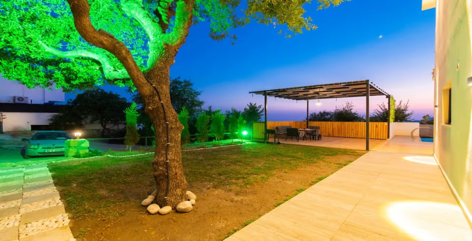 Havuz ve Bahçe : Villamızın geniş kullanım alanı bulunan bahçe katında özel yüzme havuzu, şezlonglar, güneş şemsiyesi, barbekü, bahçe masası ve sandalyeler bulunmaktadır.