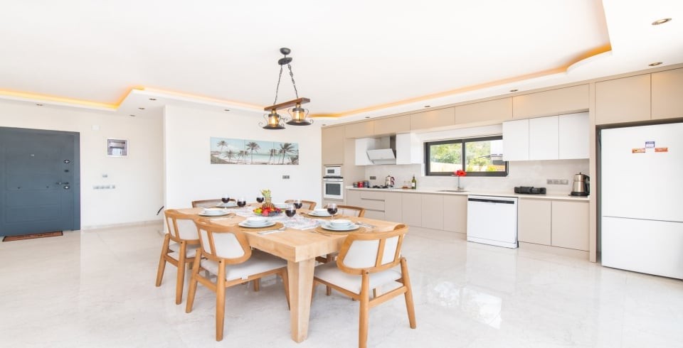 Mutfak: Modern Amerikan mutfak içerisinde ankastre 4lü ocak, ankastre fırın, mikrodalga fırın, yemek masası, tost makinesi, buzdolabı, bulaşık makinesi, ekmek kızartma makinesi, su ısıtıcısı, bardak takımı, yemek takımı, çatal-bıçak takımı, çamaşır makinesi, tavalar, tencereler ve diğer yemek pişirme ekipmanları bulunmaktadır.