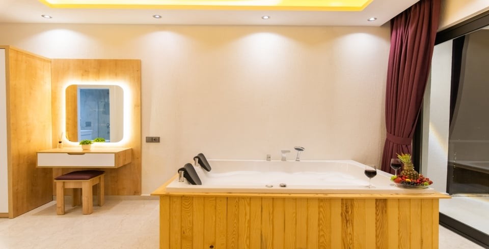 1.Yatak odası: 1 adet çift kişilik yatak, elbise dolabı, makyaj masası, klima, komodin, jakuzi, banyo ve tuvalet bulunmaktadır.