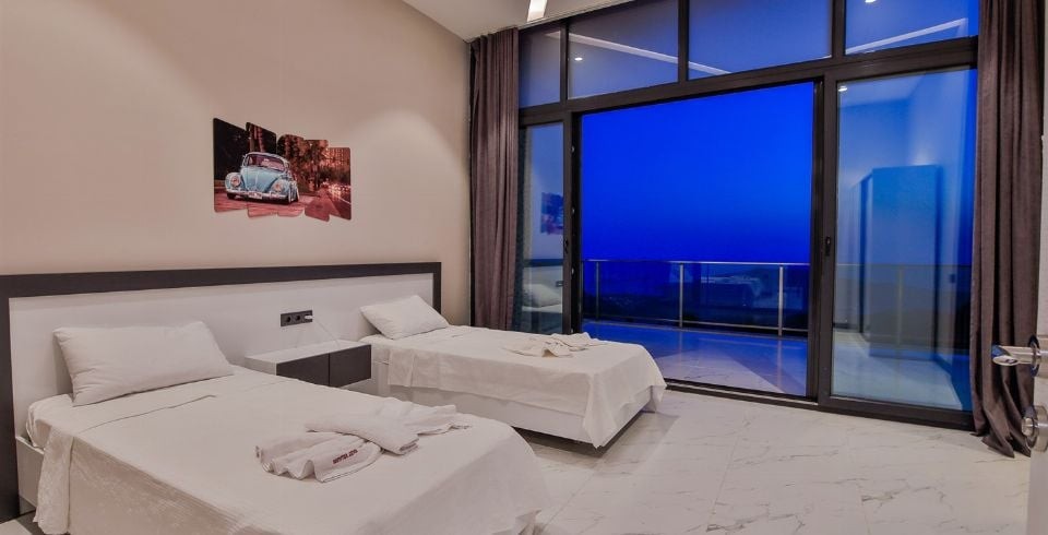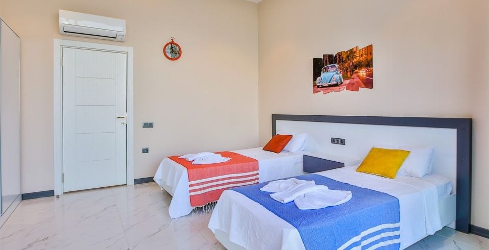 2. Yatak Odası : 2 adet tek kişilik yatak, komodin, masa-sandalye, makyaj masası, elbise dolabı, klima, banyo ve lavabo bulunmaktadır.
