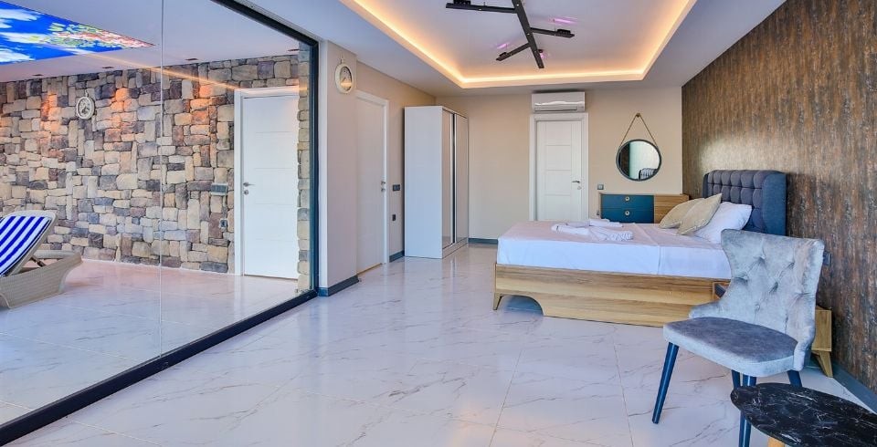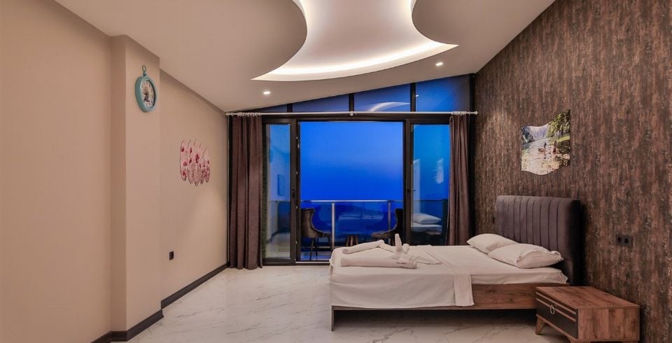 3. Yatak Odası : Çift kişilik yatak, komodin, klima, makyaj masası, masa-sandalye, elbise dolabı, banyo ve lavabo bulunmaktadır.