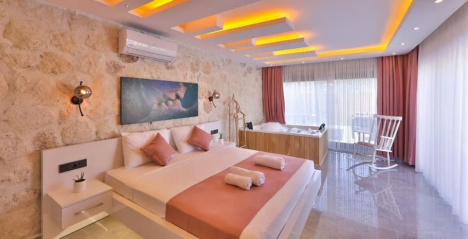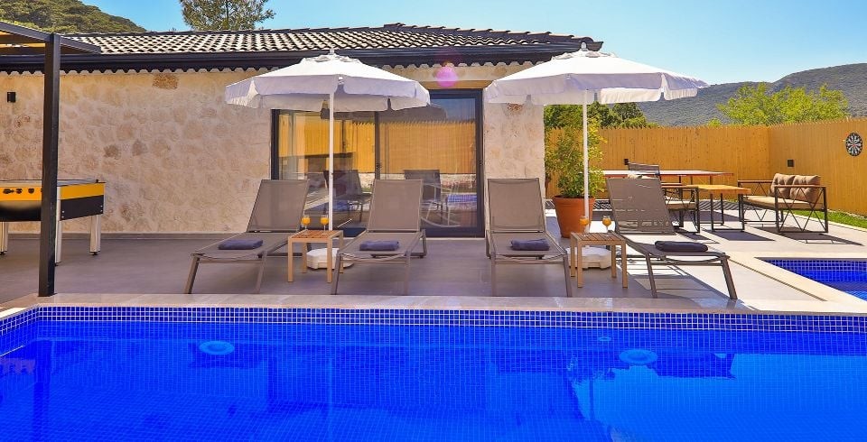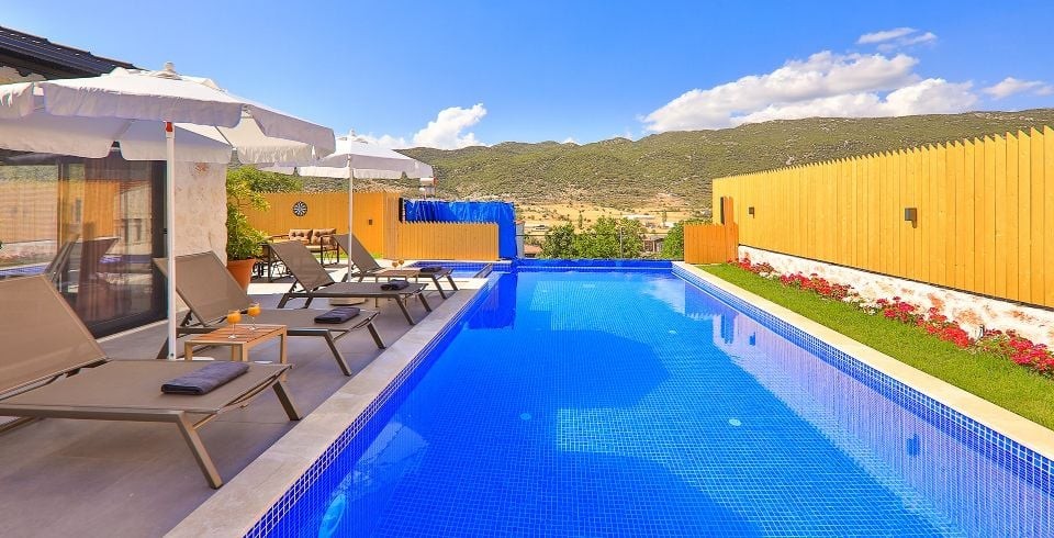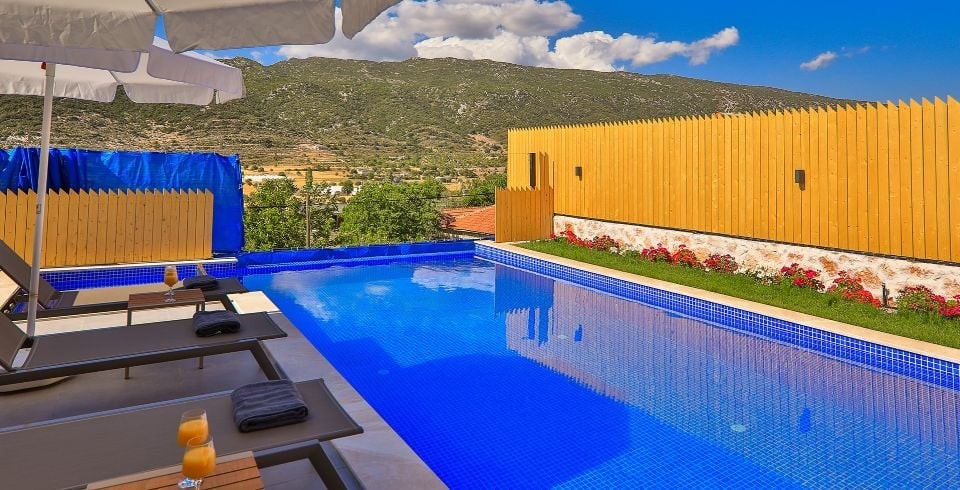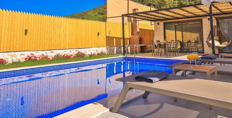 Kalkan Sarıbelen Bölgesinde bulunan 2 yatak odalı 4 kişilik olan muhafazakar villamız 2021 yılı Haziran ayında tamamlanmış olup siz değerli misafirlerimizin hizmetine sunulmuştur. Villamız muhafazakar havuzlu olup dışarıdan gözükmemektedir. Villamız Sarıbelen Köyü Merkezinde bulunmakta olup market ihtiyacınızı kolay bir şekilde tedarik edebilirsiniz. Villamızdan Kalkan merkeze ve Bölgede bulunan plajlarımıza yaklaşık olarak 15-20 dk. araç mesafesinde bulunmaktadır.