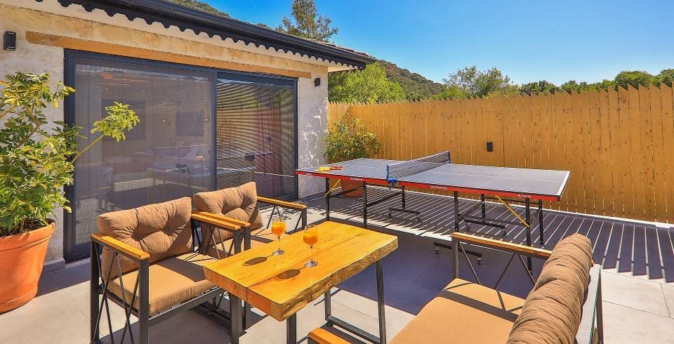 Havuz ve Bahçe : Havuz ve bahçesi korunaklı olup dışarıdan gözükmemektedir. Özel yüzme havuzu, şezlong, şemsiye, masa tenisi oyun parkı, yemek masası ve barbekü bulunmaktadır.