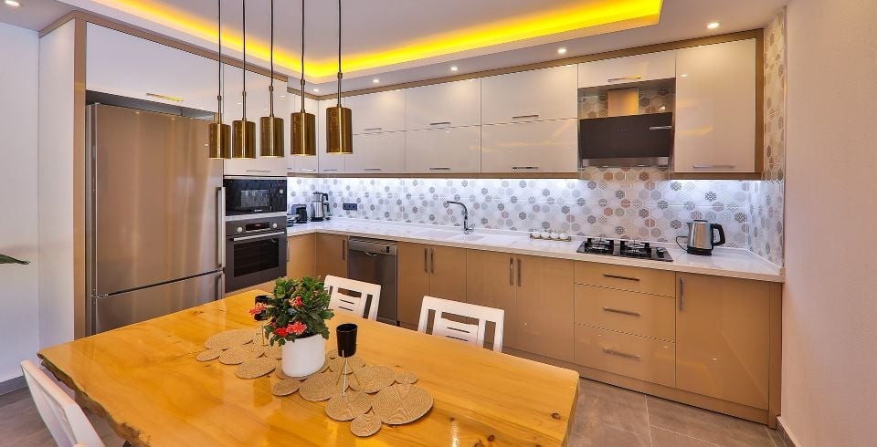 Mutfak : Villamızın mutfağında buzdolabı bulaşık makinası, çamaşır makinası, 4'lü ocak, ketıl, 4 kişilik yemek takımı bulunmaktadır.