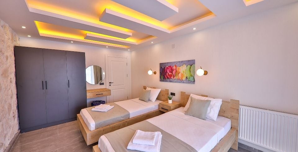2. Yatak Odası :  2 adet tek kişilik yatak, klima, elbise dolabı, komodin, makyaj masası ,banyo ve tuvalet bulunmaktadır.