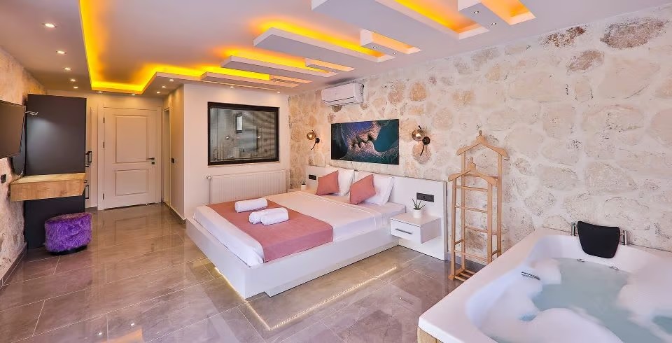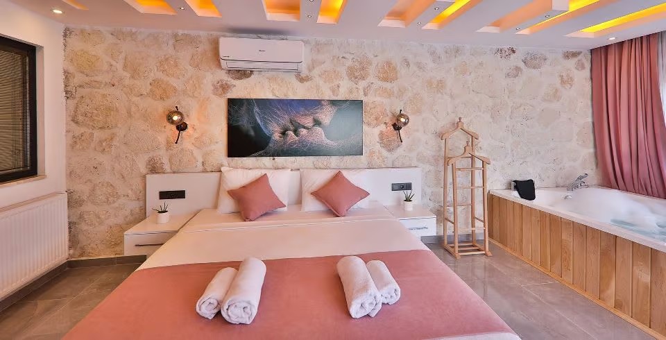 1. Yatak Odası : Çift kişilik yatak, klima, komodin, elbise dolabı, jakuzi, makyaj masası  banyo ve tuvalet bulunmaktadır.