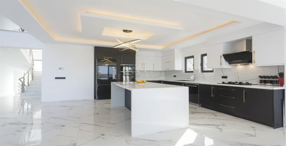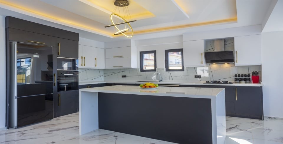 Mutfak: Açık planlı mutfak, 8 kişi ve daha fazla kişiye yetecek kadar mutfak malzemeleri, buzdolabı, fırın, ocak, mikrodalga fırın, bulaşık makinesi, çamaşır makinesi, tost makinesi, kettle ve çaydanlık bulunmaktadır..