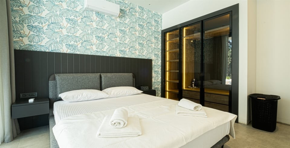 1. Yatak Odası: Çift kişilik yatak (1 Adet), Odaya özel banyo, Klima