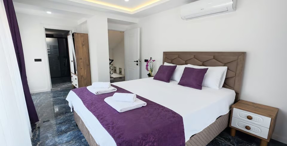 4.Yatak Odası: Çift kişilik yatak, klima, elbise dolabı, tuvalet ve banyo bulunmaktadır.