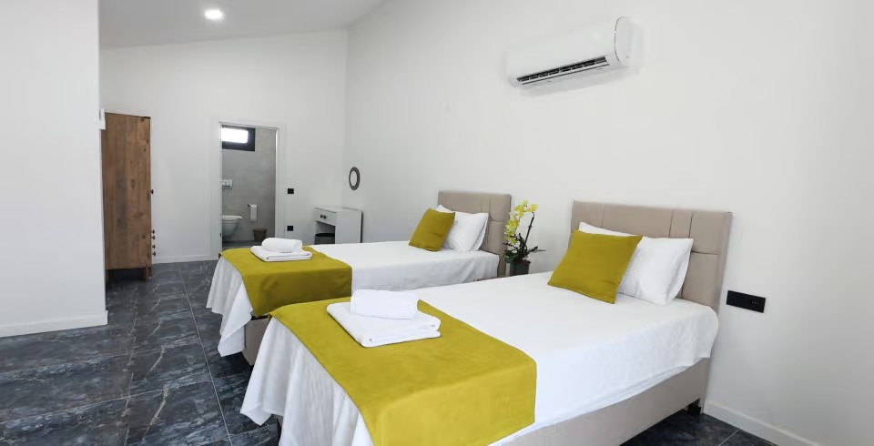 3.Yatak Odası: 2 adet tek kişilik yatak, klima, elbise dolabı, makyaj masası, tuvalet ve banyo bulunmaktadır.