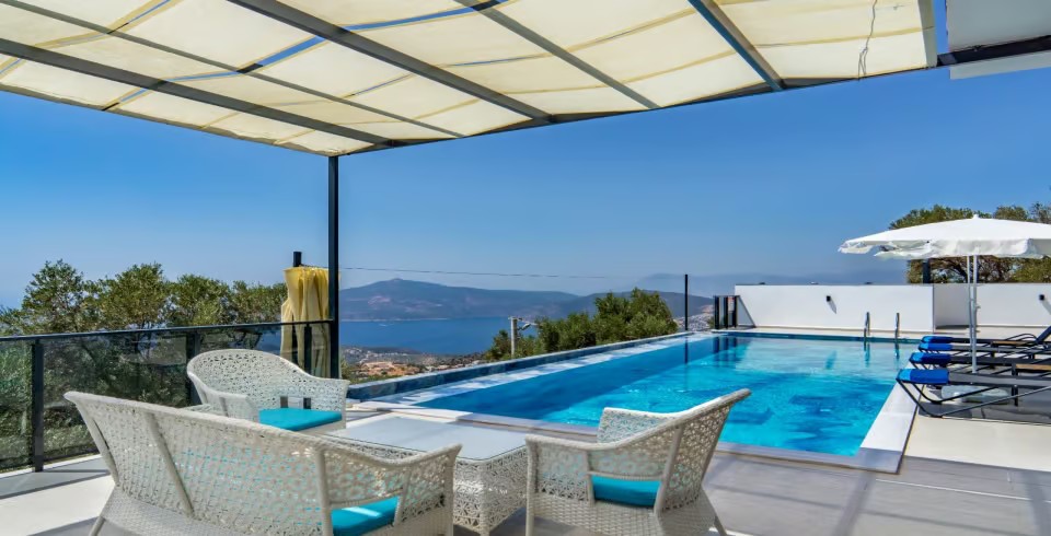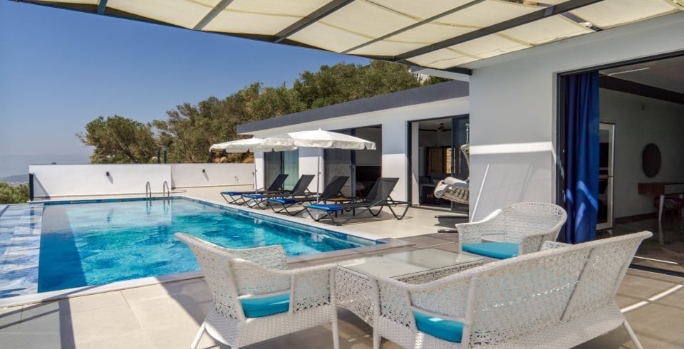 Havuz ve Bahçe : Villamızın havuz terasında şezlong, şemsiye, yemek masası, oturma grubu, barbekü, özel yüzme havuzu, bulunmaktadır.