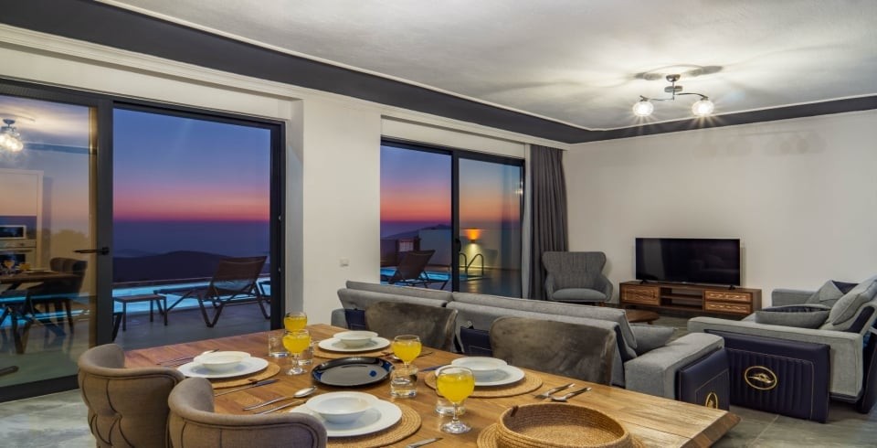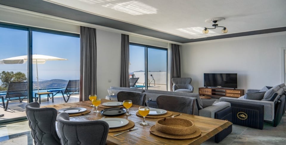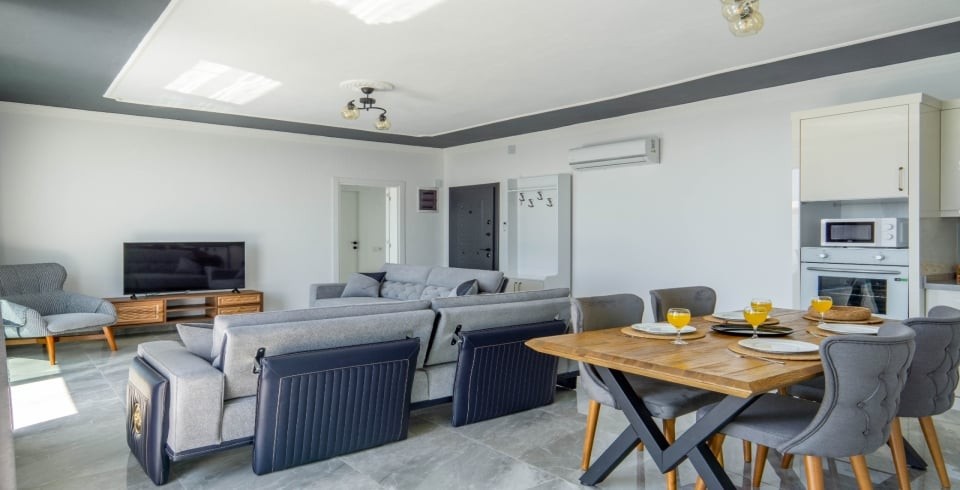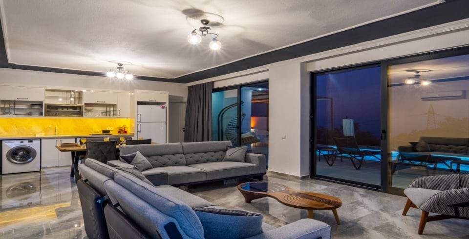 Salon : Villa salonunda oturma grubu, TV, internet, klima, sehpa bulunmaktadır.