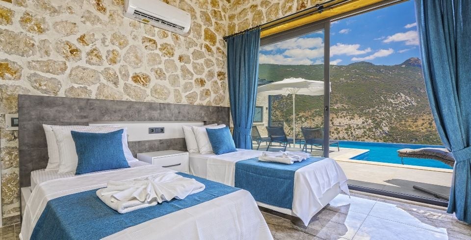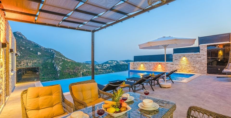 Villa Kartal Tepesi Kalkan İslamlar bölgesinde yer almaktadır. 2 yatak odasına sahip tatil villamız 4 kişilik konaklama kapasitesine sahiptir. Doğa içinde bir konuma sahip olan tatil villası kapalı havuz ve sauna bulunmaktadır. Özellikle aileler için ideal bir seçenek olan Villamız muhafazakar hassasiyete sahip misafirlerimiz içinde uygun bir tatil ortamı sunmaktadır.