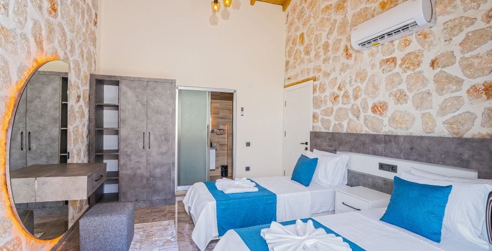 2. Yatak Odası: 2 adet tek kişilik, klima, TV komodin, elbise dolabı, makyaj masası banyo ve tuvalet bulunmaktadır.