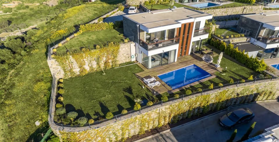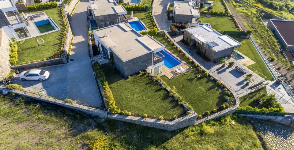 Villamız, Yalıkavak'ın benzersiz manzarası eşliğinde tüm ihtiyaçlarınızı karşılayacak şekilde özenle ve modern bir tarzda döşenmiştir. Girişte 2 araçlık özel park alanı bulunmaktadır. Buradan, özel yüzme havuzu ve bahçe bölümüne veya ana giriş kapısına geçiş sağlanmaktadır.