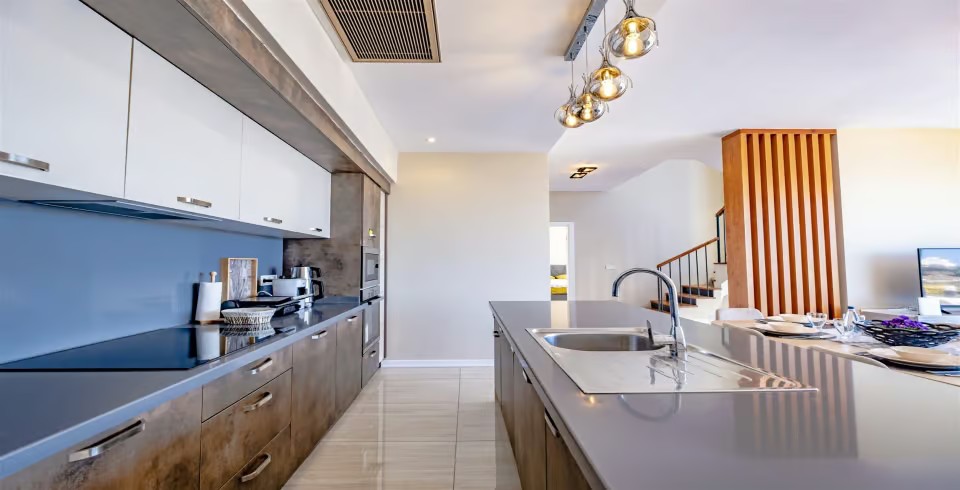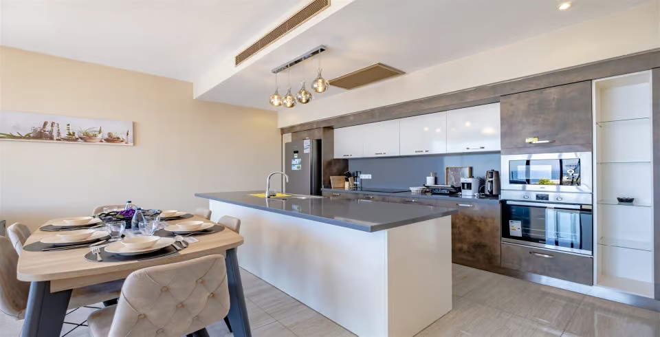 Mutfak : Modern Amerikan mutfakta yemek masası, buzdolabı, bulaşık makinesi, fırın, ocak, mikrodalga fırın, tost makinesi, yemek takımları, çatal-bıçak takımları, tencere-tava setleri ve bardaklar mevcuttur.