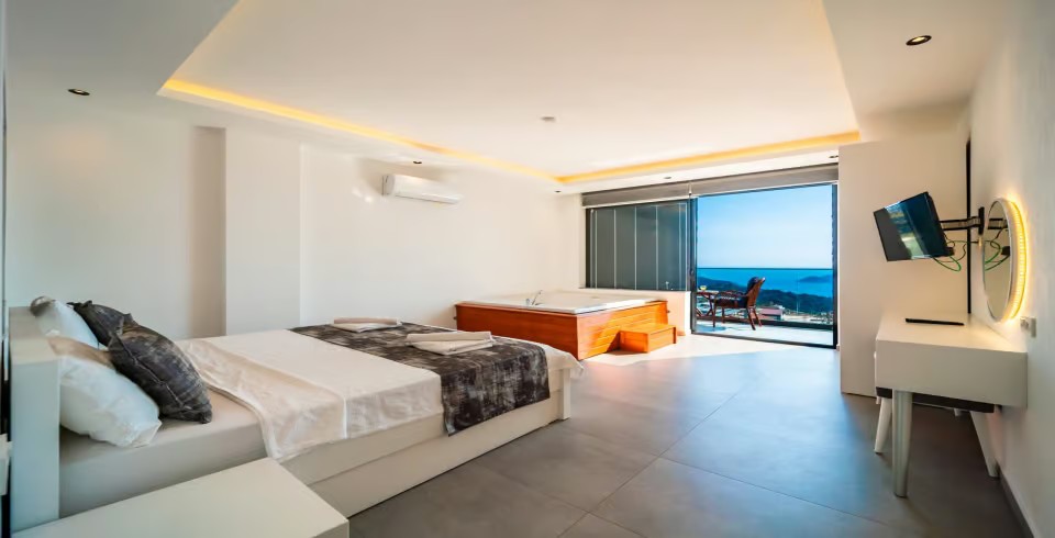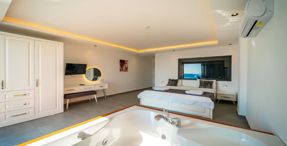 Villa Kaya Royal muhafazakar villa kategorisinde bulunmakta olup dışarıdan görünmeyen bir villadır. İnşaatı 2020 yaz ayında bitmiş olup yeni bir villadır. Villamızın ayrıca süit yatak odasında jakuzi bulunmakta olup balayı villası olarak düşünenler için son derece ideal bir seçenek olacaktır.