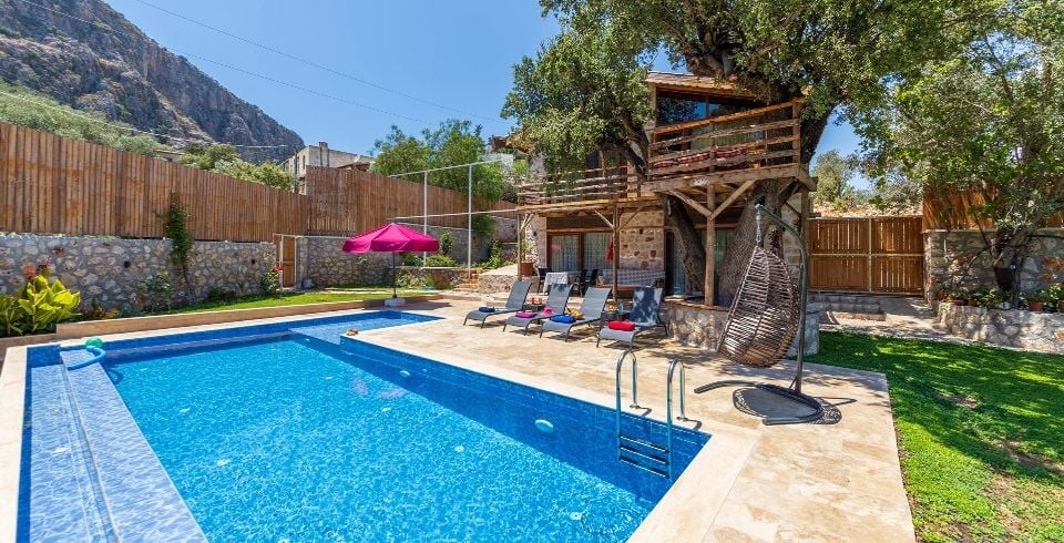 Villa Kayadibi Kalkan ulugöl bölgesinde yer almaktadır. 2 yatak odasına sahip tatil villamız 4 kişilik konaklama kapasitesine sahiptir. taş ve ahşam mimariye sahip olan villamız doğa içerisinde yer almaktadır. Havuz alanı bahçe alanı ile sizlere keyifli bir tatil ortamı sunmaktadır. Özellikle aileler için ideal bir seçenek olan Villamız muhafazakar hassasiyete sahip misafirlerimiz içinde uygun bir tatil ortamı sunmaktadır.