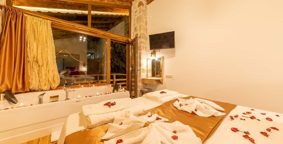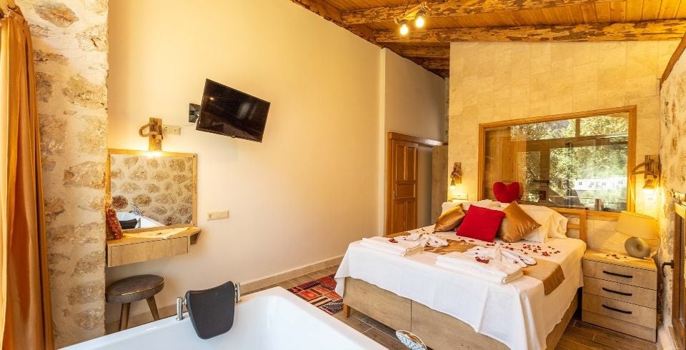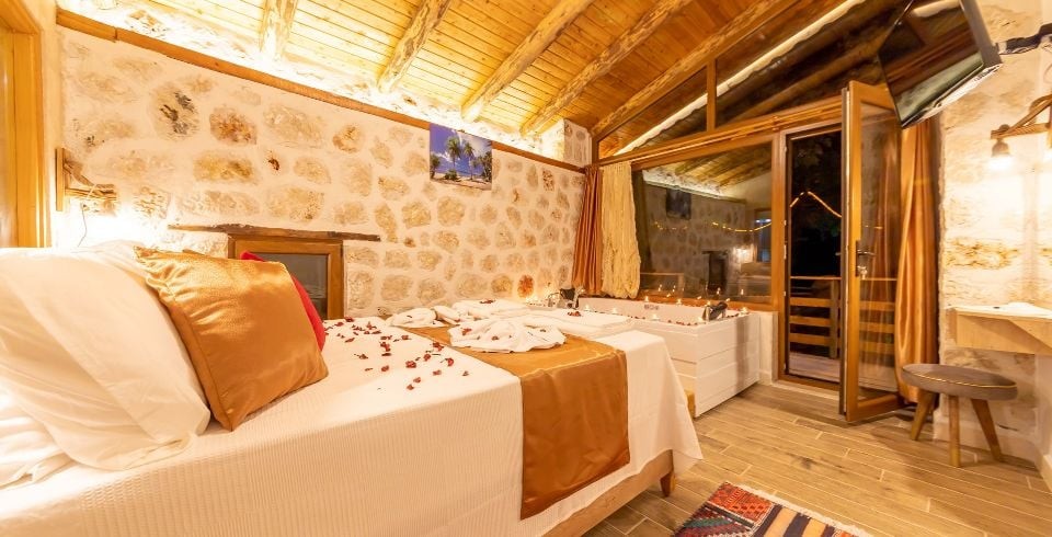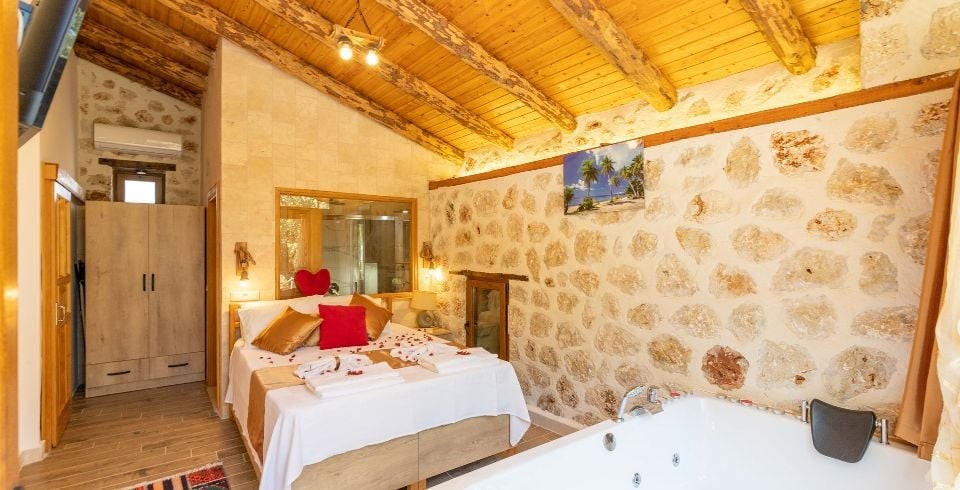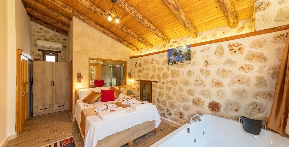 1. Yatak Odası: Çift kişilik yatak, klima, jakuzi,  komodin, elbise dolabı, makyaj masası, banyo ve tuvalet bulunmaktadır.