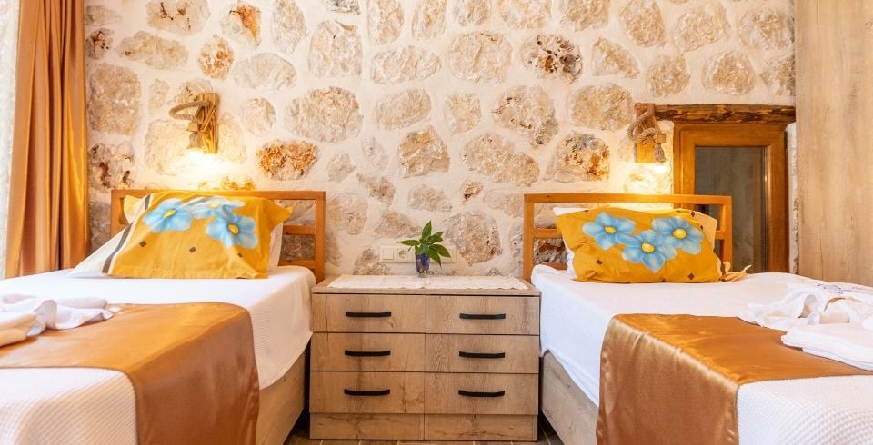 2. Yatak Odası: 2 adet tek kişilik,  klima, TV komodin, elbise dolabı, makyaj masası  banyo ve tuvalet bulunmaktadır.