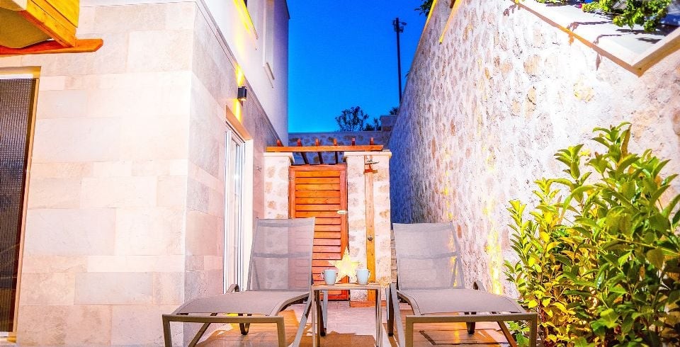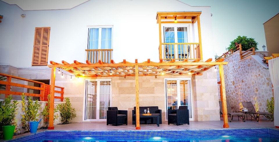Kiralık yazlık villamız Kalkan Lavanta mevkiinde konumlanmıştır. Muhteşem deniz ve ada manzarasına sahiptir. Villamız 2 yatak odalı 4 kişilik kapasiteye sahiptir. Balayı çiftleri ve aileler için bu manzarada vakit geçirmenin tadını çıkarmak için en güzel seçeneklerimizden bir tanesidir. Özel yüzme havuzu ve lüks eşyalar kullanılmıştır. Villamızın salon bölümünden havuz terasına çıkış yapılmaktadır.