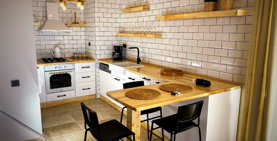 Mutfak : Modern Amerikan mutfak içerisinde 4 kişilik yemek masası ,mama sandalyesi, buzdolabı, bulaşık makinası, fırın, ocak, mikrodalga fırın, tost makinası, yemek masası, yemek takımları, çatal ve bıçak takımları, tencere ve tava takımları, bardaklar bulunmaktadır.