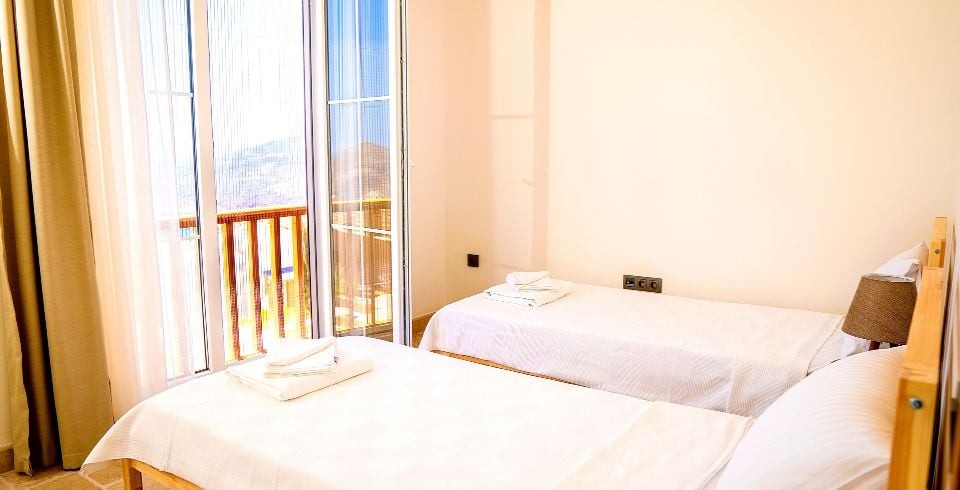 2. Yatak Odası : 2 adet tek kişilik yatak, klima, komodin, elbise dolabı, makyaj masası, banyo ve tuvalet bulunmaktadır.