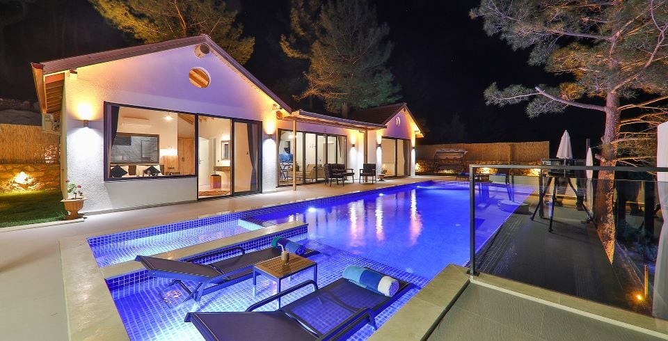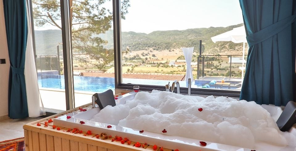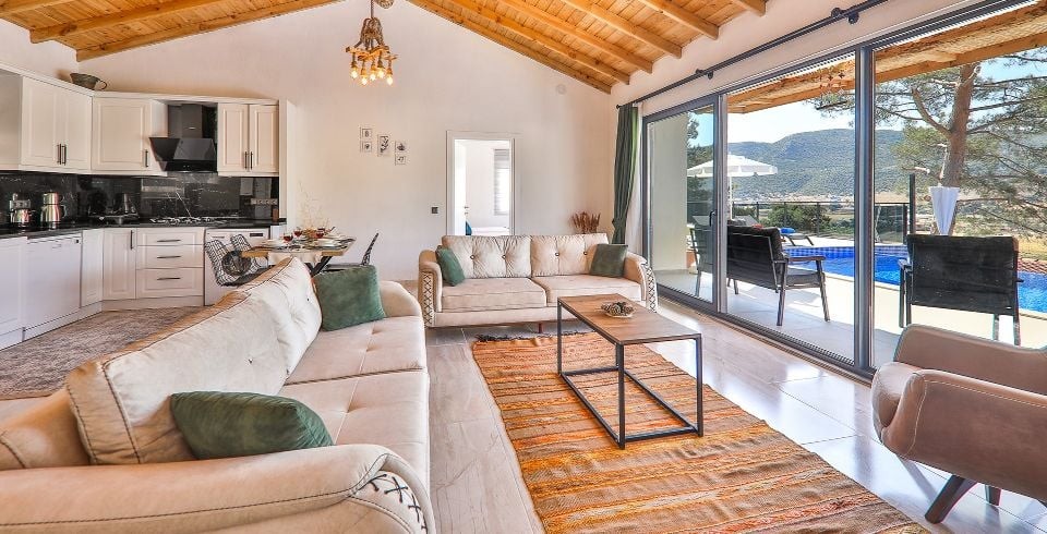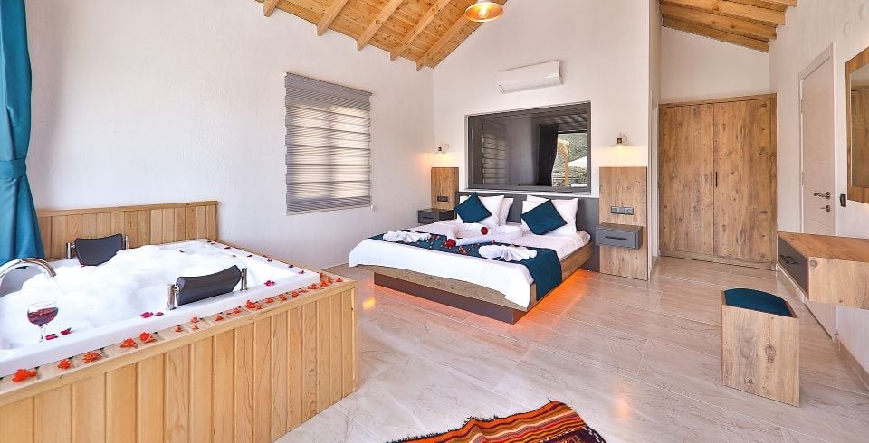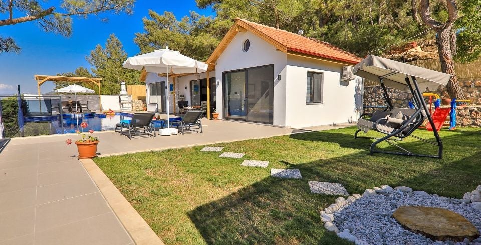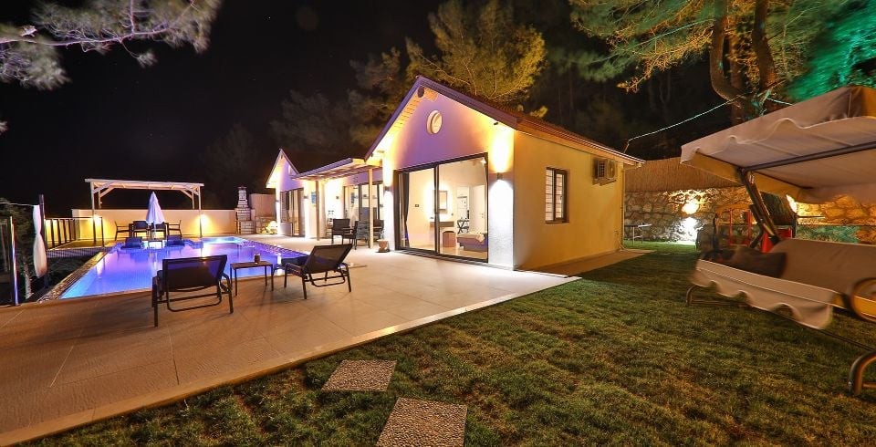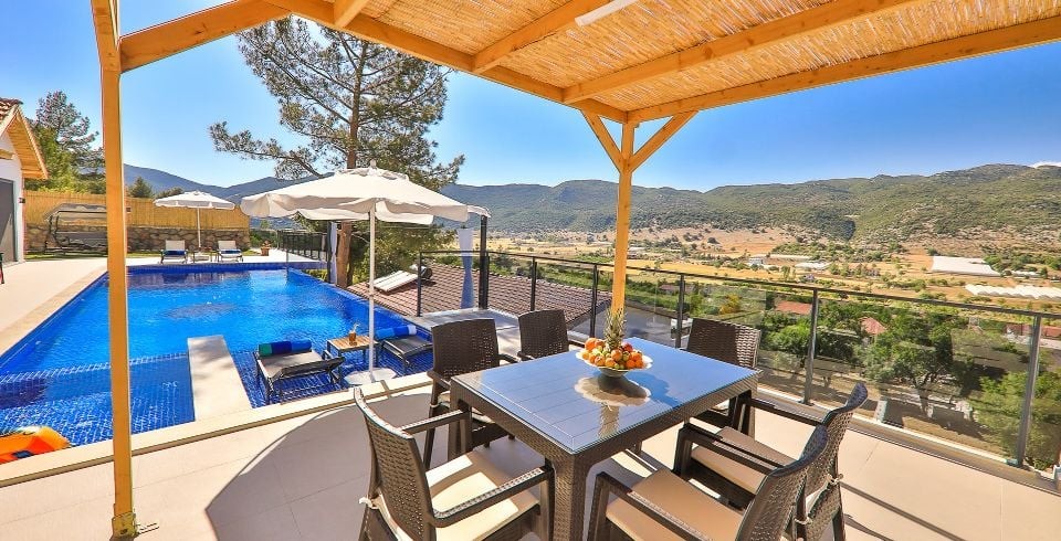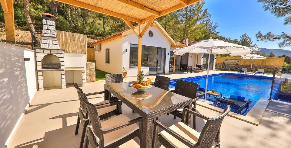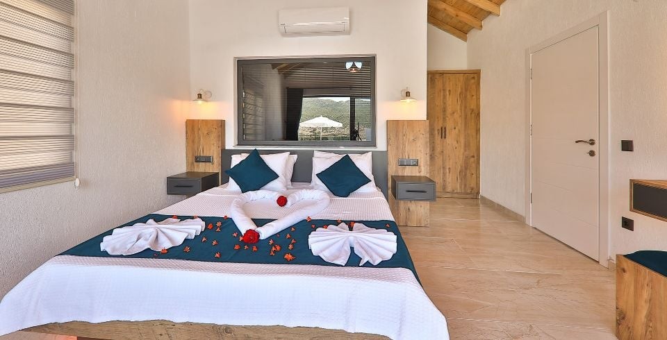 Kalkan Sarıbelen bölgesinde doğa  manzarasına sahip 2 Yatak Odalı 4 Kişilik Özel Yüzme Havuzlu Muhafazakar Kiralık villamız 2021 yılında tamamlanmış olup yeni ve modern bir villamızdır. Balayı çiftleri ve çocuklu aileler için geniş havuz terasında ve geniş bahçe alanında sessiz ve sakin rahat bir tatil arzulayan misafirlerimiz için bu villa seçeneğimiz son derece yerinde bir karar olacaktır.  Villamızın tüm yatak odalarından havuz terasına çıkış bulunmaktadır.