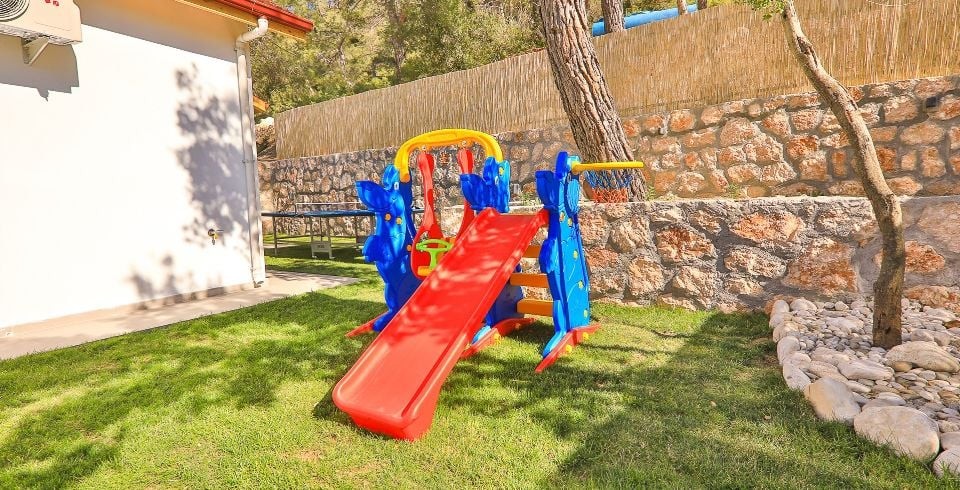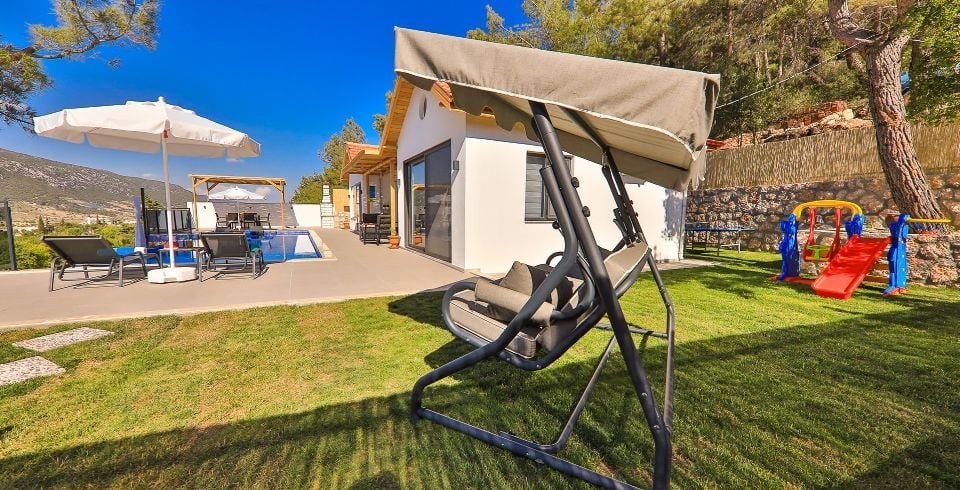 Bahçe : Bahçe içerisinde özel yüzme havuzu, 4 adet şezlong , bahçe mobilyaları, tenis masası , oyun parkı, ayaklı mangal bulunmaktadır.