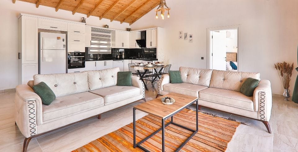 Salon : Salon içerisinde oturma grubu, tTV, klima,  sehpa bulunmaktadır. Havuz terasına çıkış yapılabilmektedir.