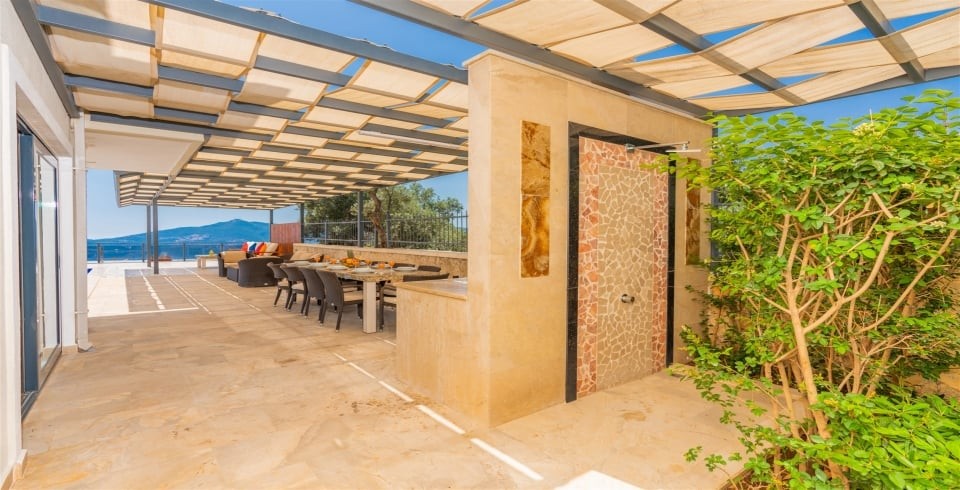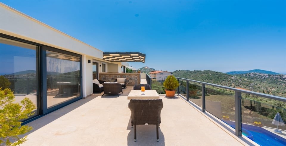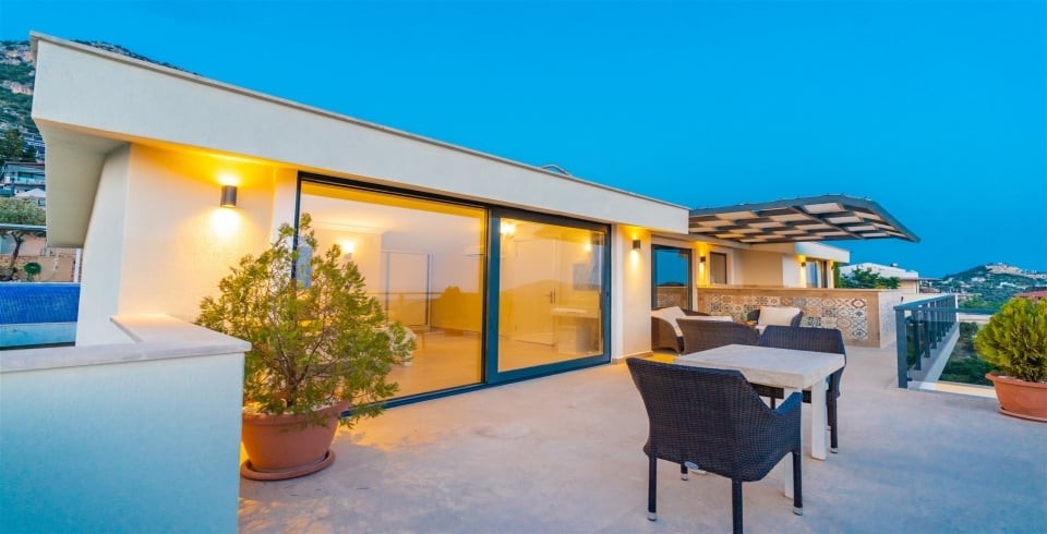 Kalkan'da bulunan bu villamız coğrafi yapısı bakımından, yamaç üzerine kurulmuş bu harika tasarım villamız bu yüzden size harika bir manzara sunmaktadır. Kalkan ve çevresindeki bulunan tüm villalarımıza ulaşmak için, yokuş yukarı çıkılmaktadır ama bunun sonucunda mükemmel bir tatil yerine ulaşmış olacaksınız.