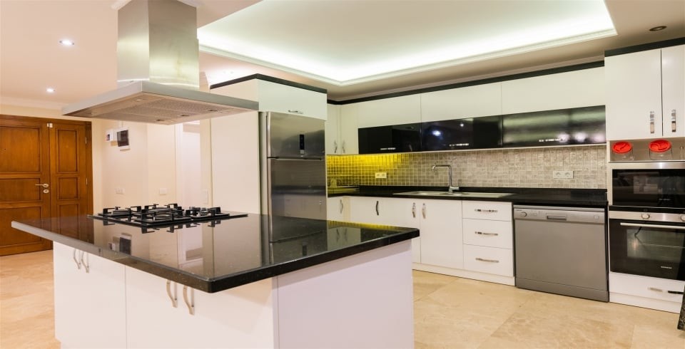 Mutfak : Villamızda sizleri geniş ve konforlu bir Amerikan mutfak bekliyor. Bu mutfak kalabalık iseniz sizlere rahatlıkla konfor saplayabilir. Bulaşık makinası, buzdolabı, ankastre 4’lü ocak, fırın, çamaşır makinası, elektrikli su ısıtıcı, mikrodalga fırın, ekmek kızartma makinası, tencere ve tava takımları,12 kişilik yemek takımı, çatal ve bıçak takımlar, çay, kahve ve su bardakları bulunmaktadır. Mutfak da villamızın havuz katında bulunmaktadır.