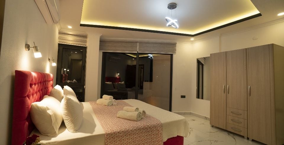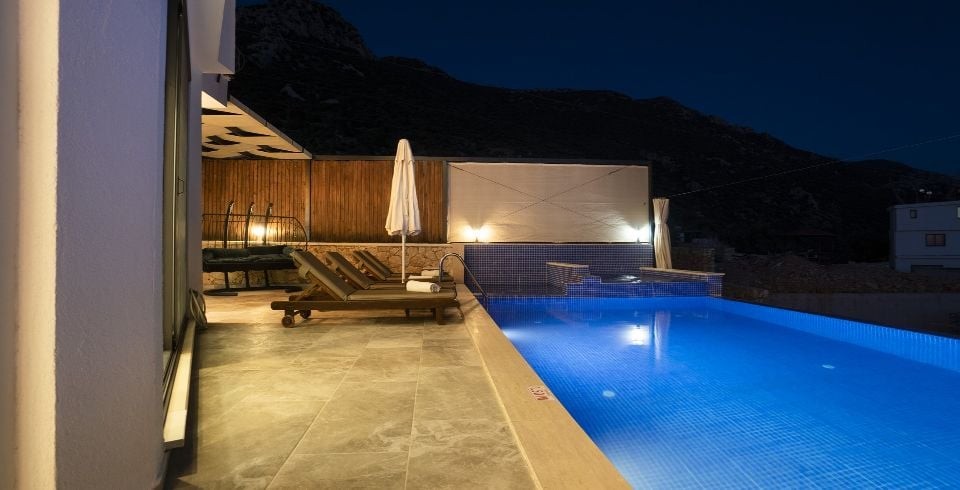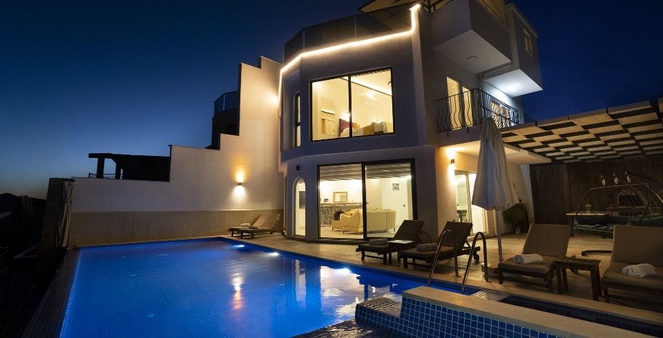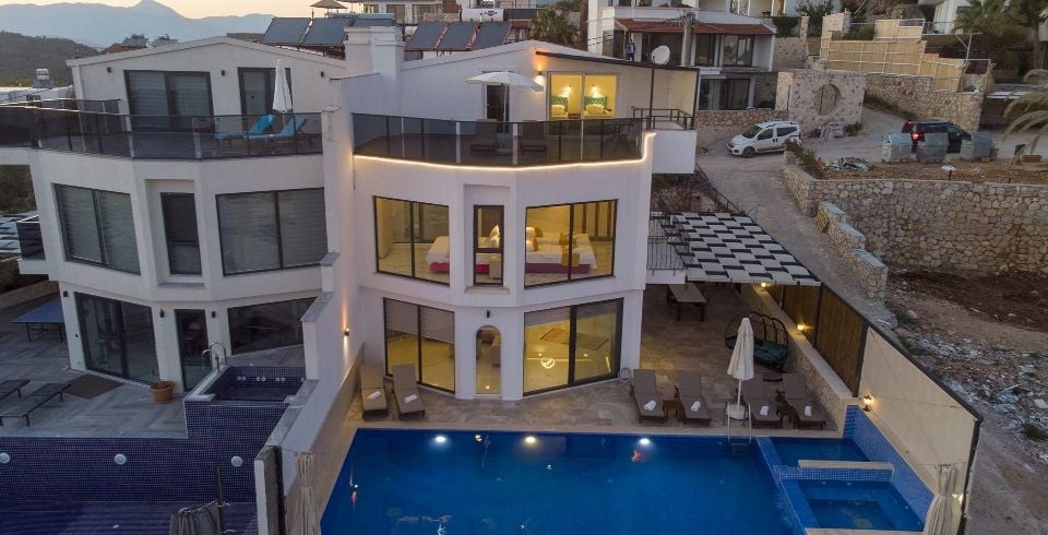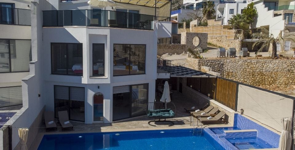 Kalkan Akbel’de bulunan Villa Kübra, doğa manzarasının yanında deniz manzarasına da sahiptir. 4 yatak odası bulunup her odaya özel banyosu bulunan bu şık dizayn edilmiş villamızın özel yüzme havuzu bulunmakla beraber korunaklı bir şekilde muhafaza edilmiştir. Manzaraya sıfır olan havuz size lüks içinde tatilinizi çıkarma imkanını size sunacaktır. Kalabalık aileler ve arkadaş grupları için ideal olan villamız. Havuz partileriniz için harika bir seçenek olan bu villa aynı zamanda çocuklu aileler için de ayrı bir çocuk havuzu bulunmaktadır. Minik müşterilerimizin rahat etmesi ve havuz keyfini çıkartması için özel olarak tasarlanmıştır. Aynı zamanda havuz içerisinde eşsiz Kalkan körfezine karşı keyif yapabileceğiniz bir jakuzide mevcuttur. Manzarası ve özel dizayn villamız ile harika bir tatil sizi bekliyor.