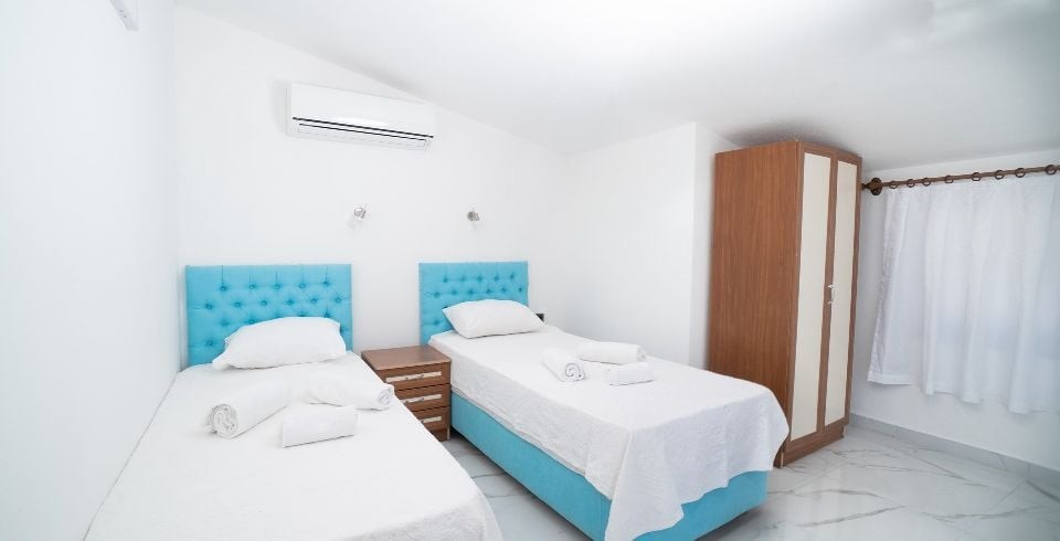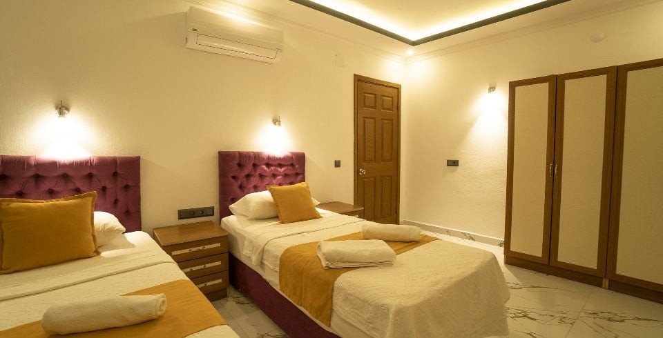 3. ve 4. Yatak odaları : Yine ikişer tek kişilik yataktan oluşur yine içerisinde elbise dolabı, komodin, her odamızda bulunan klima, makyaj masası ve ortak banyo ve tuvalet bulunur. Aynı zamanda bu odalardan balkona çıkış yapılabilir.