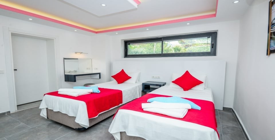 2. Yatak Odası: 2 adet tek kişilik yatak komodin, elbise dolabı, makyaj masası, banyo ve tuvalet bulunmaktadır.
