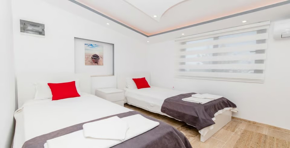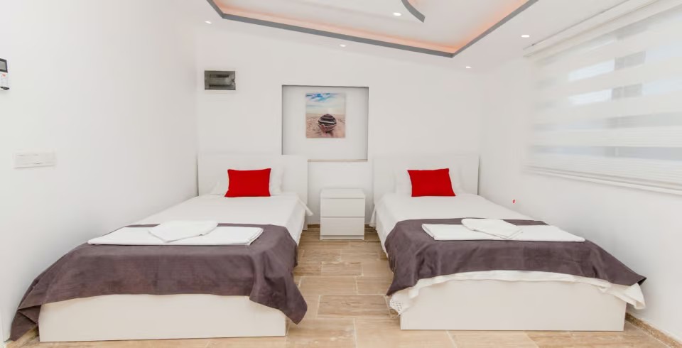 2.Yatak Odası: 2 adet tek kişilik yatak, elbise dolabı, komodin, klima, jakuzi, banyo ve lavabo bulunmaktadır.