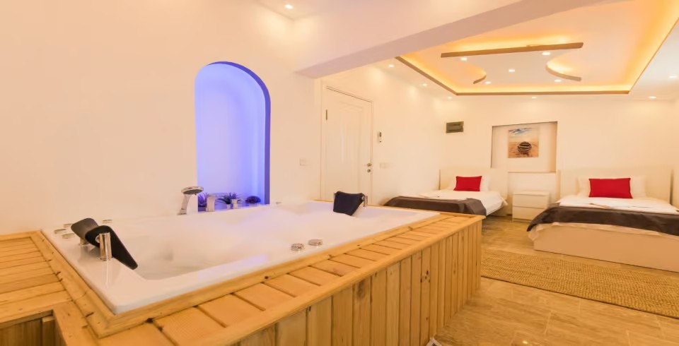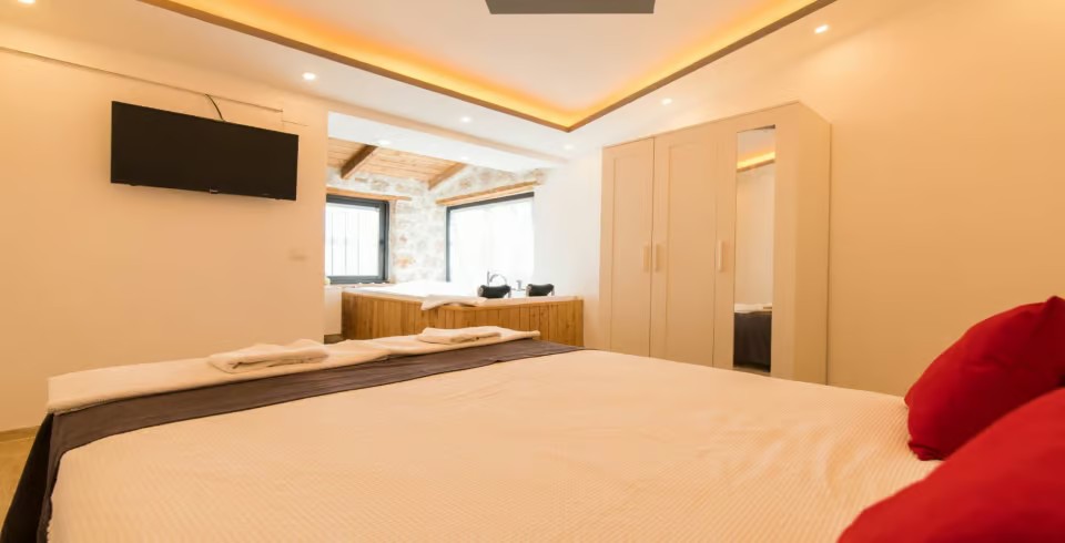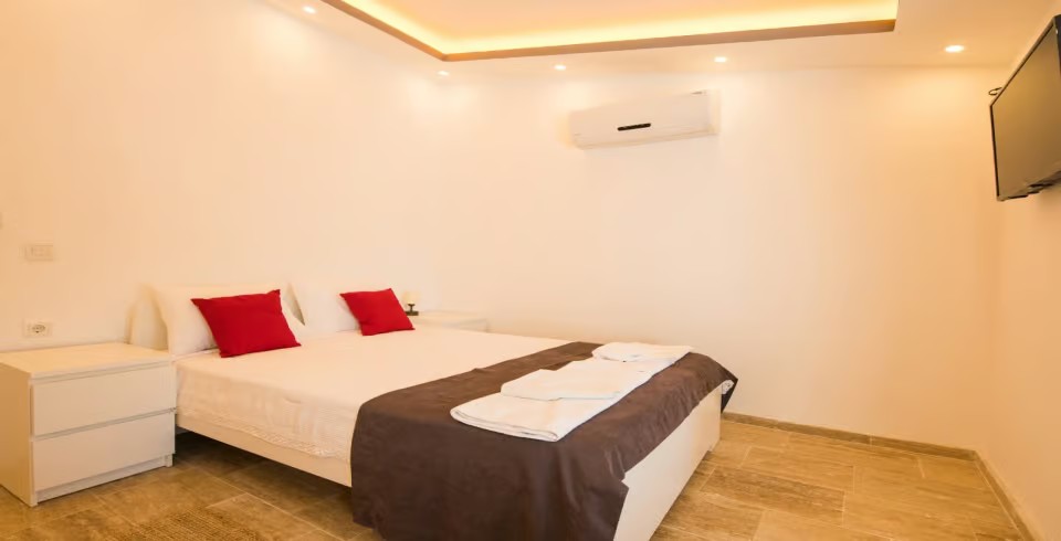 Villa Kutay, Kalkan Patara mevkiinde doğayla iç içe huzur dolu bir konumda yer alan, 4 kişi kapasiteye sahip lüks bir villadır. 2 yatak odası (biri çift kişilik, diğeri iki tek kişilik yatak), 4 banyosu ile gruplar ya da balayı çiftleri için ideal bir tercih sunar. Villada Türk hamamı, sauna, her iki yatak odasında jakuzi ve kapalı ısıtmalı havuz bulunmaktadır; havuz terası korunaklı şekilde tasarlanmış olup dışarıdan görünmezlik sağlar. Tam donanımlı Amerikan mutfak, geniş salon, klima, TV ve konforlu mobilyalar tatilinizi keyifli hale getirir.