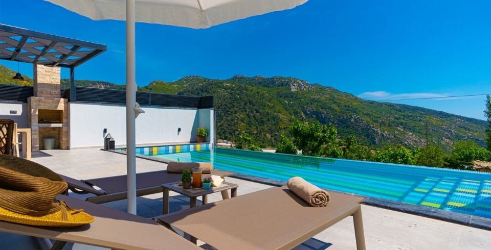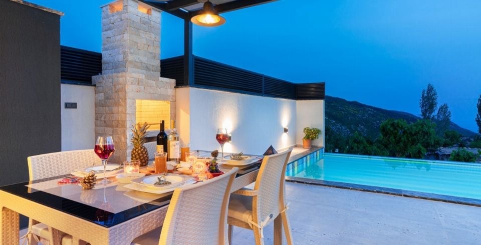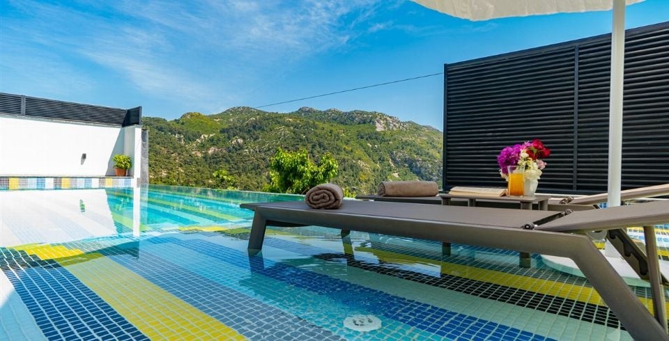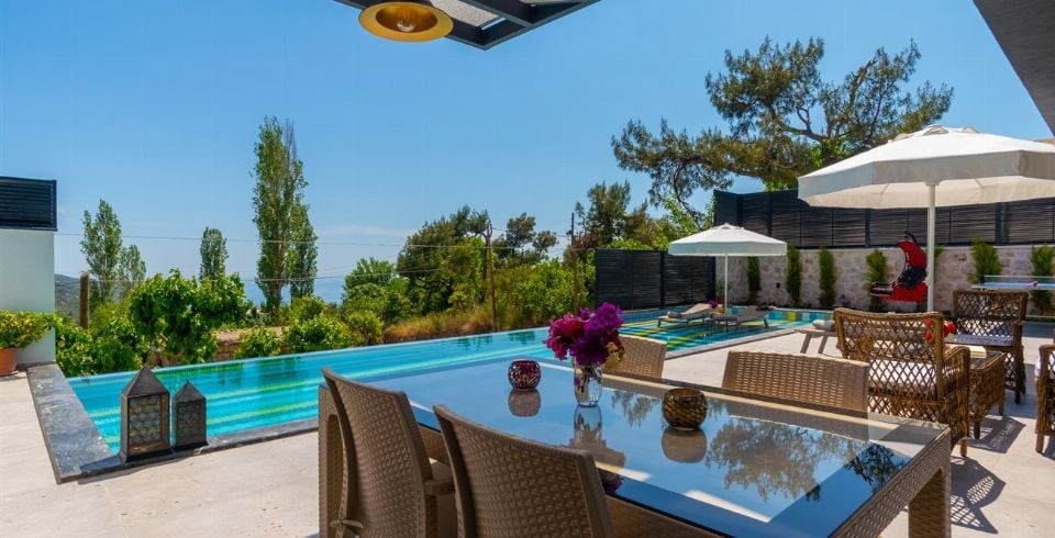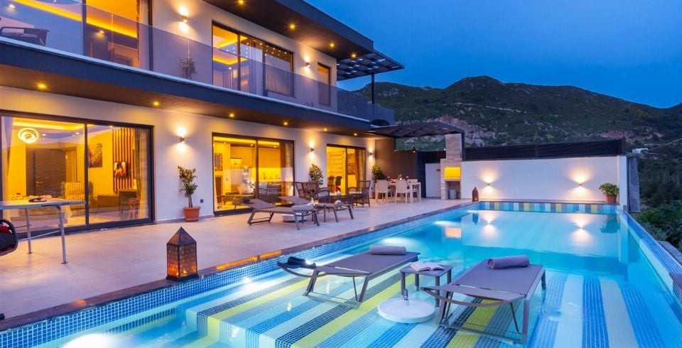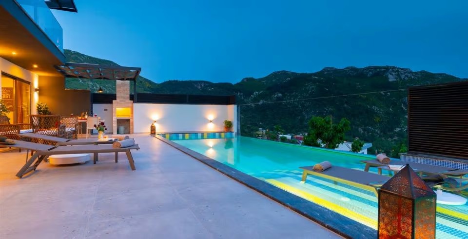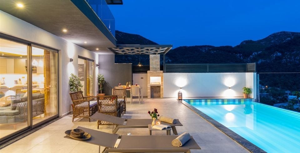 Dünyaca ünlü tatil beldesi Kalkan İslamlar bölgesinde bulunan kiralık yazlık villamız, Villa Kuzey 2019 yılında tamamlanmış olup siz değerli misafirlerimizin beğenisine sunulmuştur. Lüks kiralık villamızın 13 metre boyunda sonsuzluk havuzu ve özel bir havuz terası bulunmaktadır. Villamız, çekirdek aileler ve balayı çiftleri için oldukça ideal olup, 2 oda, 4 kişi kapasitelidir. 2 katlı modern mimaride olan muhafazakar konseptteki villamız doğa içerisinde olup siz ve sevdiklerinize huzur dolu bir tatil sunmaktadır. Özel yüzme havuzu kenarında güneşlenme terası, şezlong ve şemsiye, masa tenisi ve hamak mevcuttur. Bakımlı özel bahçede barbekü yer almakta ve misafirler nefis ızgaralar yaparak yemek ihtiyaçlarını karşılamaktadır. Villa dekorasyon eşyaları gibi bahçe dekorasyon eşyaları da villa misafirlerinin keyifle vakit geçirebilmeleri için zevkle seçilmiştir.
