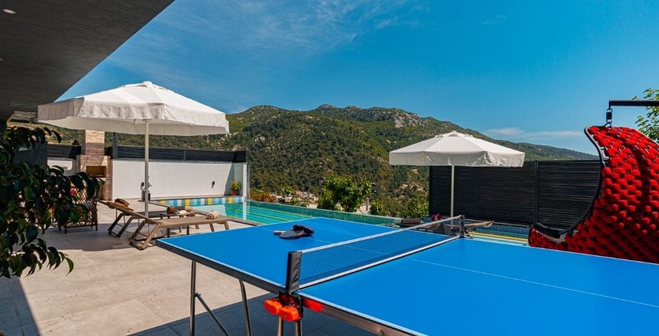 Havuz ve Bahçe : Bahçe içerisinde korunaklı özel yüzme havuzu, 4 adet şezlong ve şemsiye, masa tenisi, yemek masası ve sandalyeler, bahçe oturma grubu, hamak ve barbekü yer almaktadır.