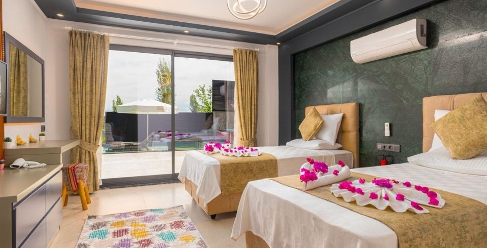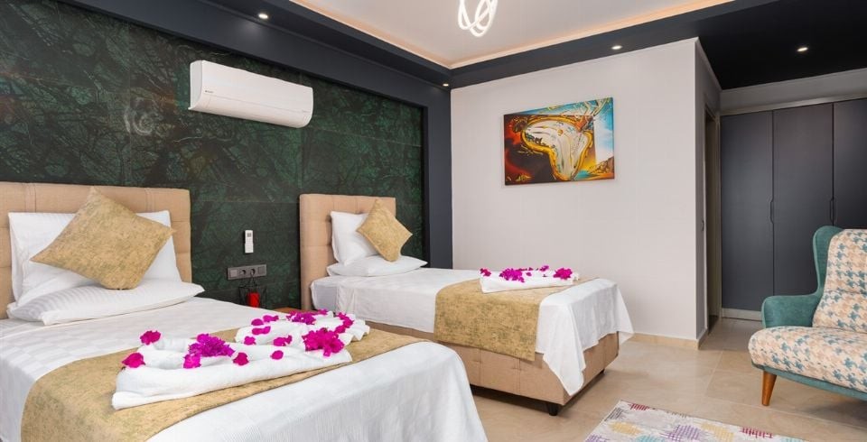 1. Yatak Odası : Süit genç yatak odası olup, 2 adet tek kişilik yatak, komodin, makyaj masası, elbise dolabı, klima, LCD TV, berjer ve banyo/tuvalet bulunmaktadır.(Giriş Katı)
