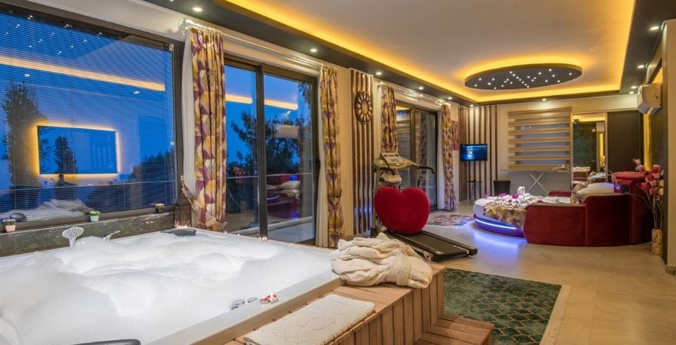 2. Yatak Odası : Süit aile yatak odası olup, 1 adet çift kişilik yatak, jakuzi, komodin, makyaj masası, elbise dolabı, klima, LCD TV, 2 adet berjer, sehpa, koşu bandı ve banyo/tuvalet bulunmaktadır. (1. Kat)