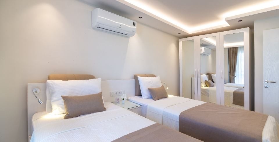 2. Yatak Odası : 2 adet tek kişilik yatak, elbise dolabı, makyaj masası, komodin bulunmaktadır. Banyo ve tuvalet bulunmaktadır.