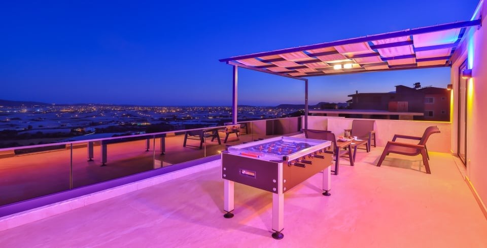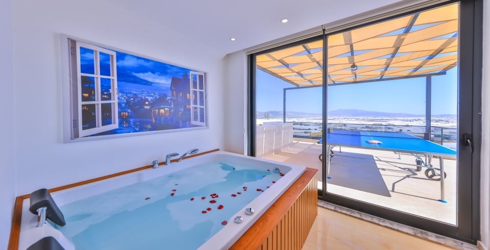 Villa Lalezar, Antalya’nın Kaş ilçesinin Çavdır mevkiinde doğayla uyum içinde, sessiz ve korunaklı bir konumda yer alan 6 kişi kapasiteli triplex bir villadır. 3 yatak odası ve 3 banyo/tuvaleti ile geniş aileler ya da arkadaş grupları için ferah bir konaklama imkânı sunar. Villada jakuzi ve sauna gibi rahatlatıcı detaylar, eğlence isteyen misafirler için langırt ve masa tenisiyle zenginleştirilmiştir. Özel havuz terası, konforlu şezlonglar ve barbekü alanı ile dış mekânın tadı çıkarılır. Mutfağı tam donanımlı Amerikan mutfakla döşeli; buzdolabı, fırın, ocak, bulaşık makinesi gibi tüm temel gereçler mevcuttur. Salon modern ve lüks tasarımlı; oturma grubu, TV, klima ve havuz terasına çıkış sağlayan geniş pencereler var. Market ve restoranlar yaklaşık 500 metre, plaja yaklaşık 15 km uzaklıkta; şehir merkezi de yaklaşık 15 km mesafededir.