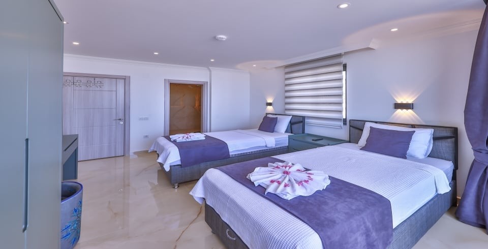 3.Yatak Odası: 2 adet tek kişilik yatak, elbise dolabı, komodin, klima, makyaj masası, banyo ve lavabo bulunmaktadır.