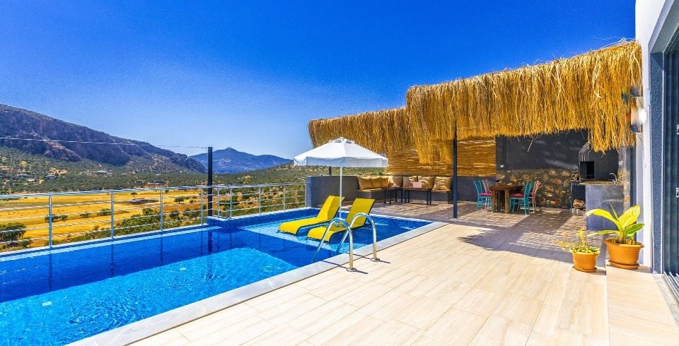 Villa Lambuka, Kalkan Ulugöl Bölgesi' nde yer alan 2 yatak odalı 4 kişilik konaklama kapasiteli kiralık villa. Villamız içerisi konforlu ve sizlerin tatili için tüm detaylar düşünülerek dizayn edilmiş olup sizlere hazır hale getirilmiştir. Villa Lambuka nın havuz terası korunaklı olup aynı zamanda doğa manzaralıdır. Villamız 4 kişilik aileler veya balayı çiftleri için ideal bir tatil seçenektir.