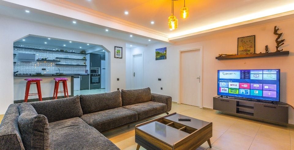 Salon : Oturma grubu, uydu TV (LCD), klima, yemek masası, lavabo ve tuvalet bulunmaktadır.